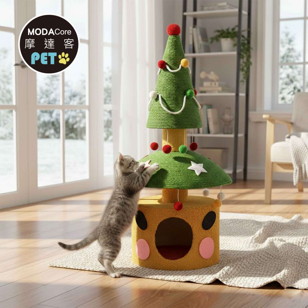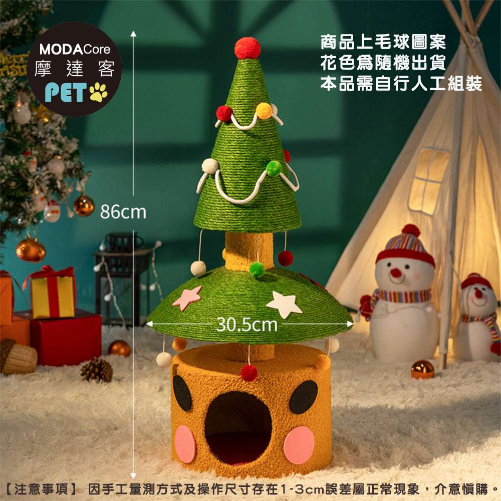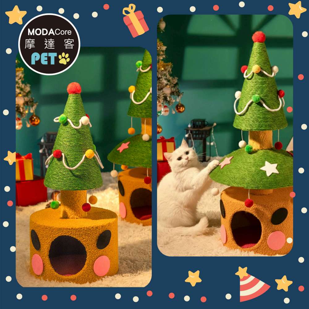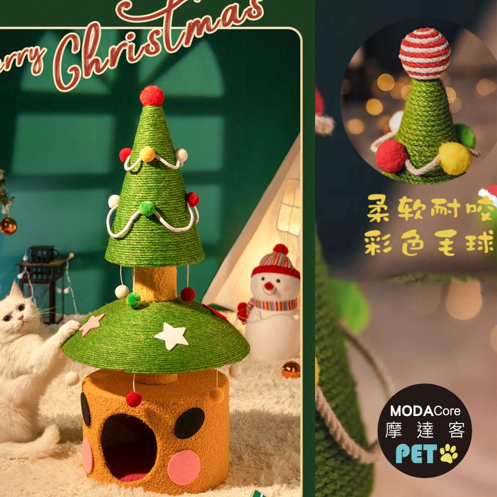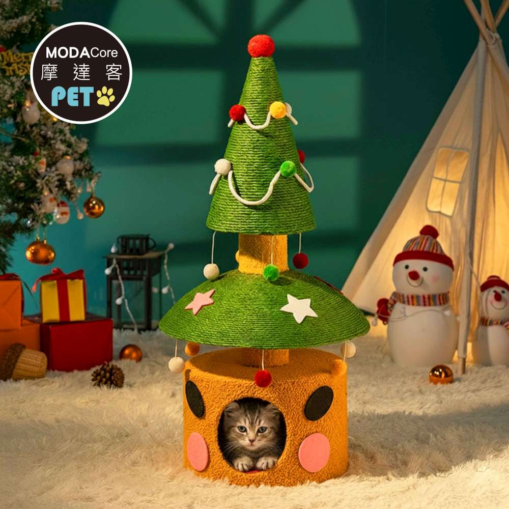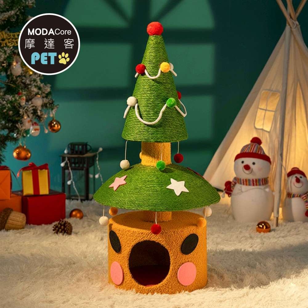 摩達客寵物-雙層雙功用暖暖絨毛劍麻聖誕樹造型樹洞貓窩+猫抓板耐磨猫咪玩具
