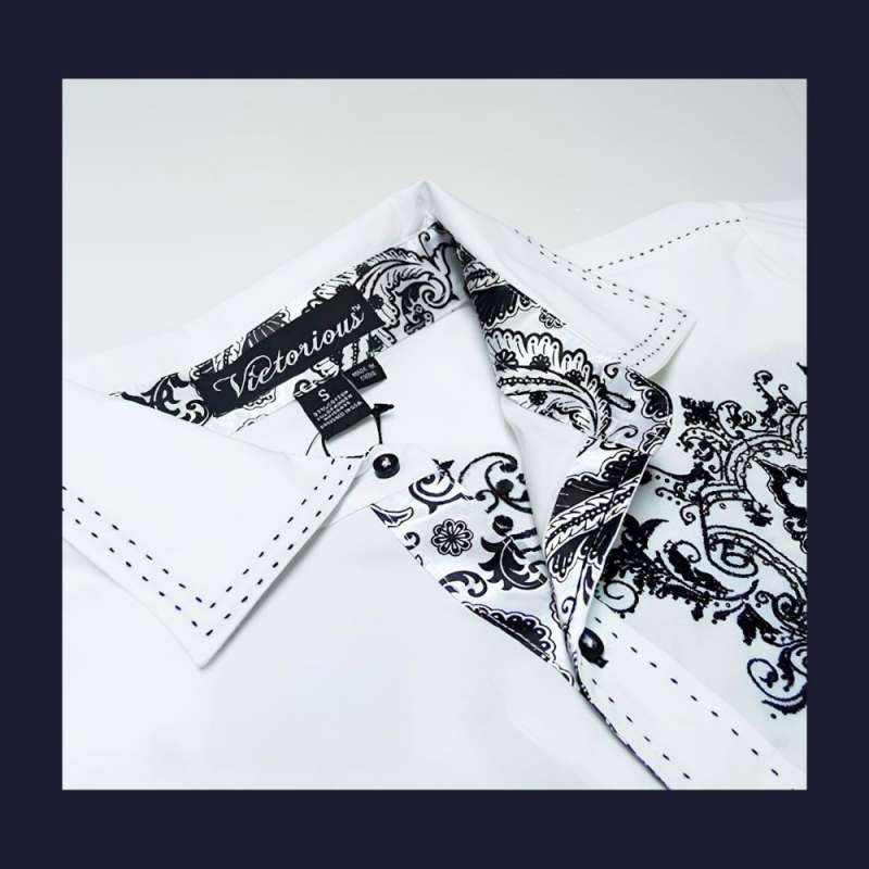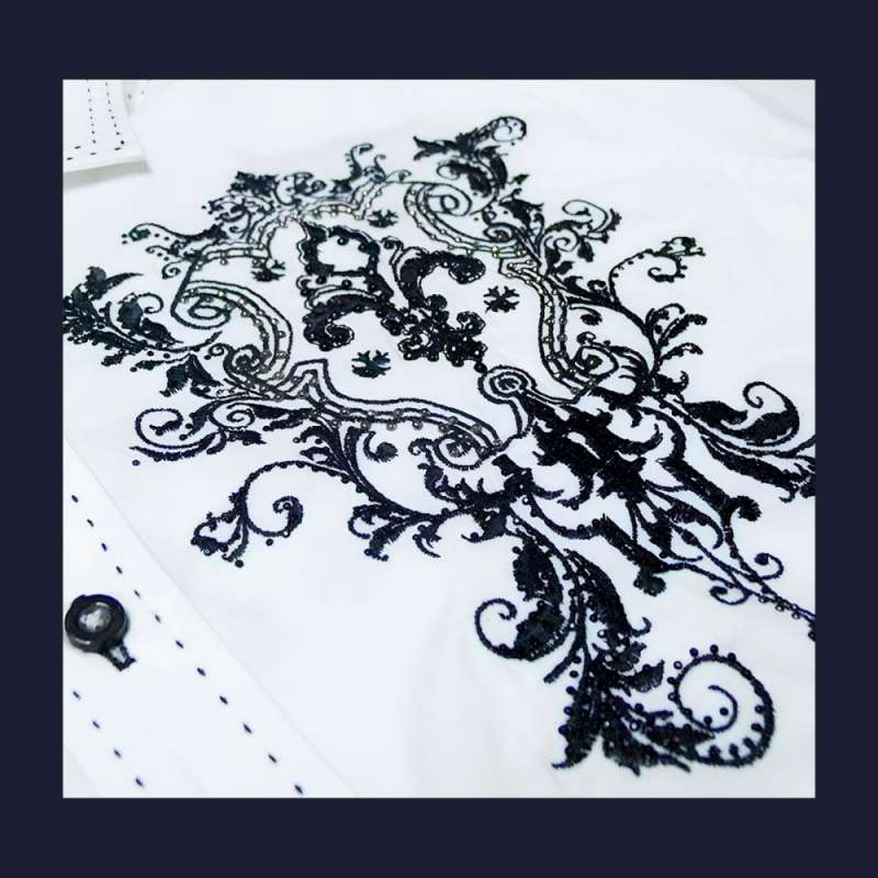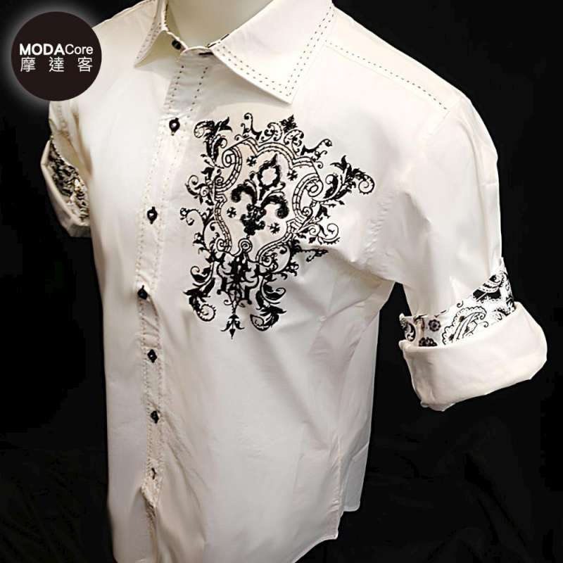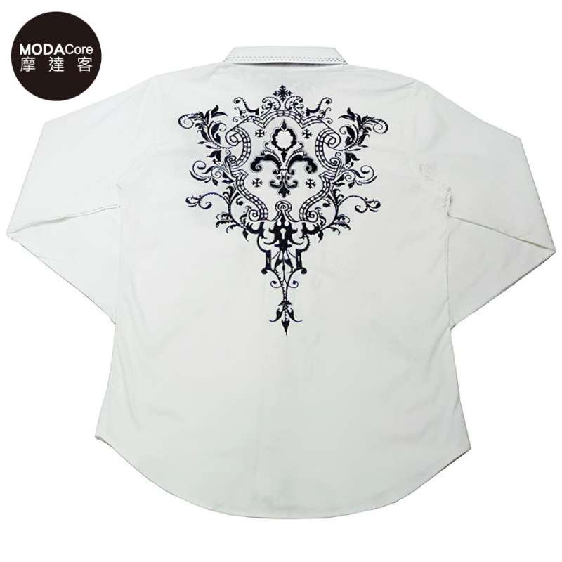【摩達客】美國進口Victorious-花紋刺繡白色長袖襯衫