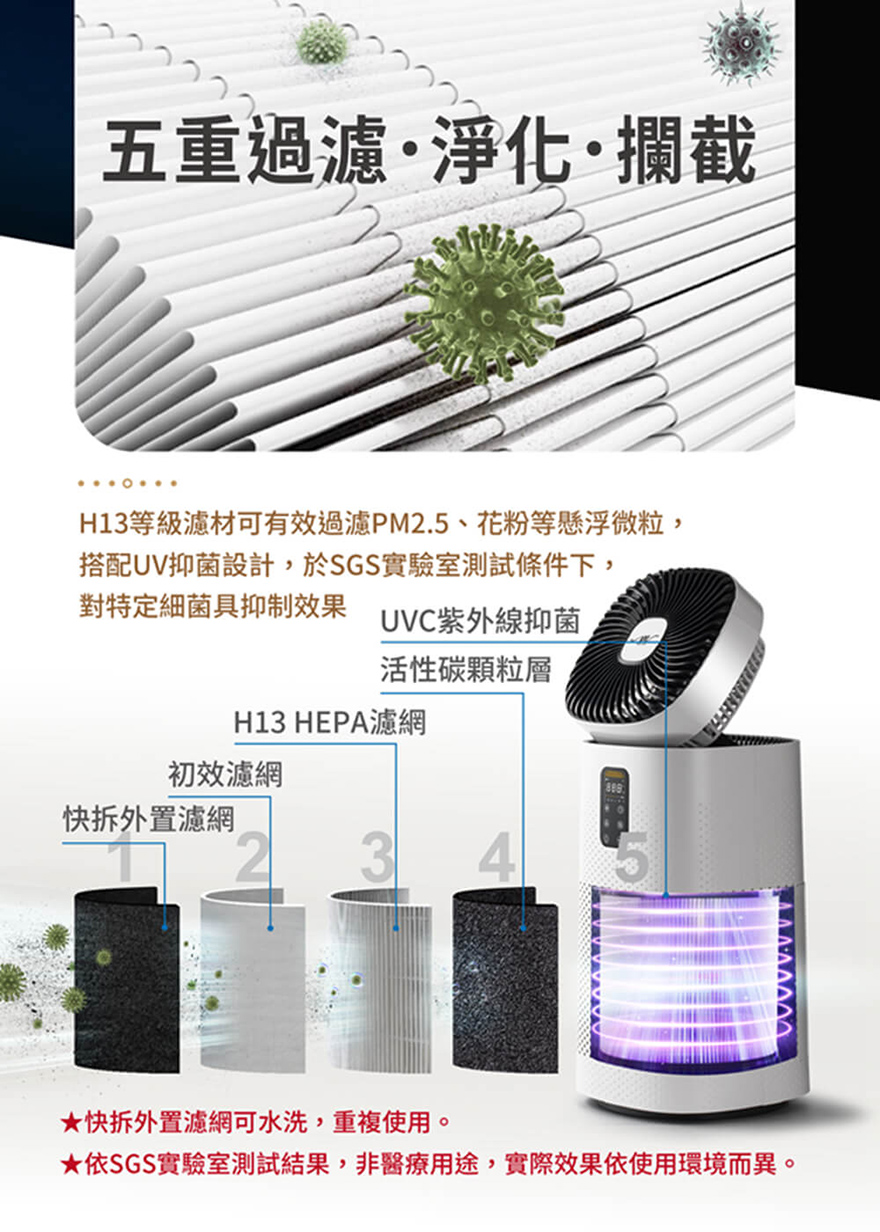 【MOLIJIA 魔力家】M196 風扇UV空氣清淨機-專用配件-快拆外置濾網補充包5片裝