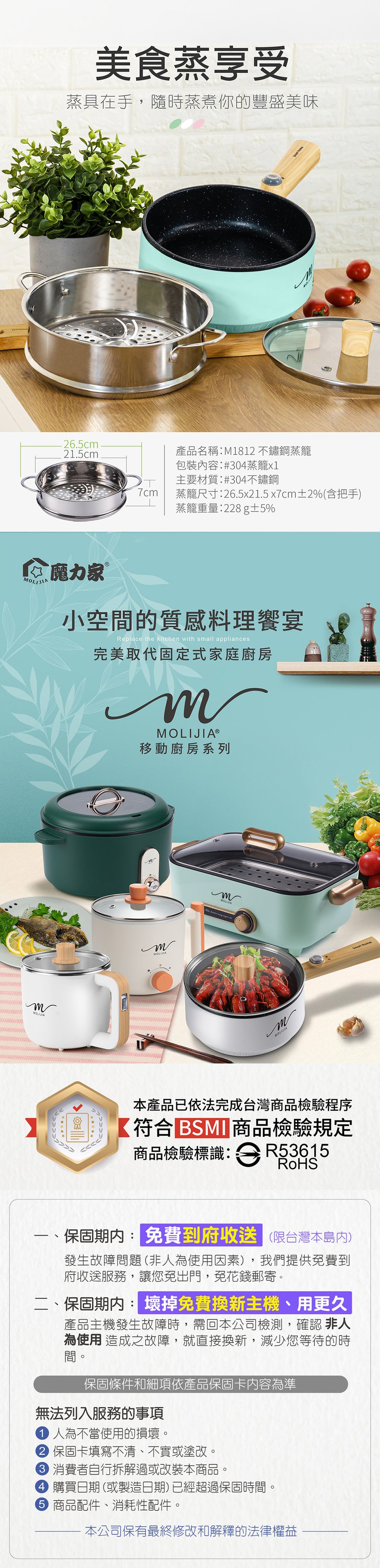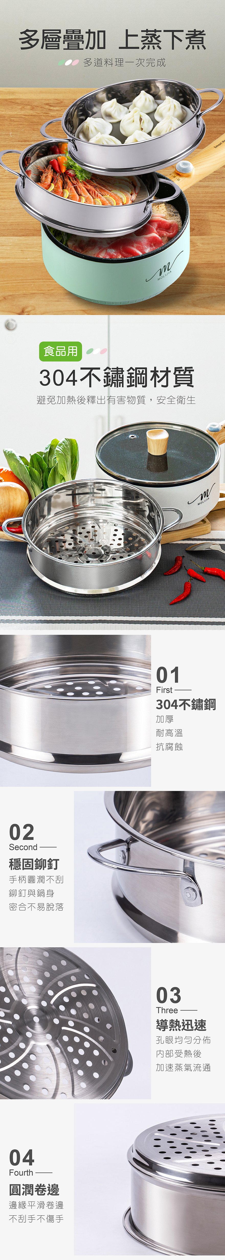 產品名稱:【MOLIJIA 魔力家】M1812不鏽鋼蒸籠