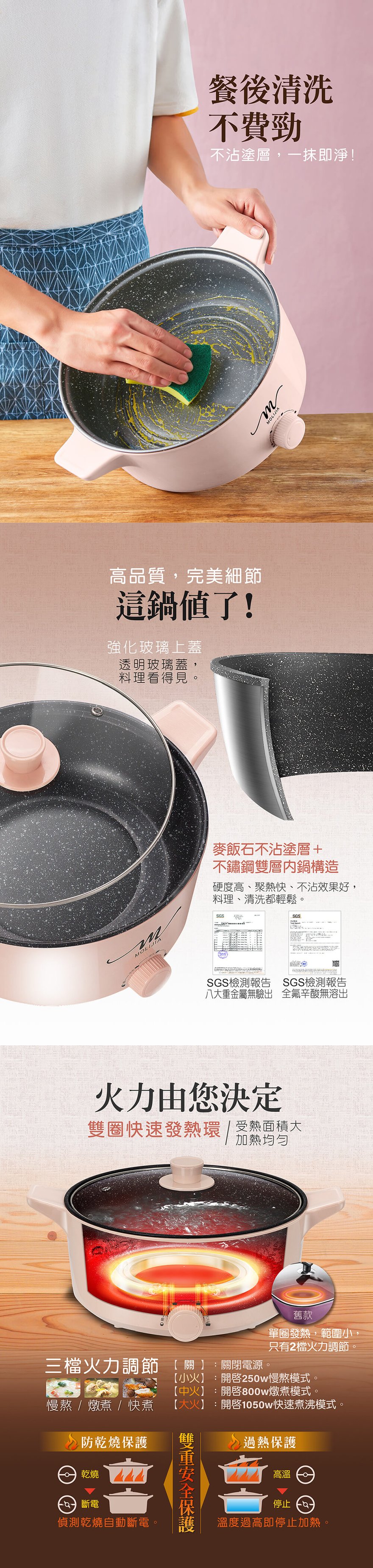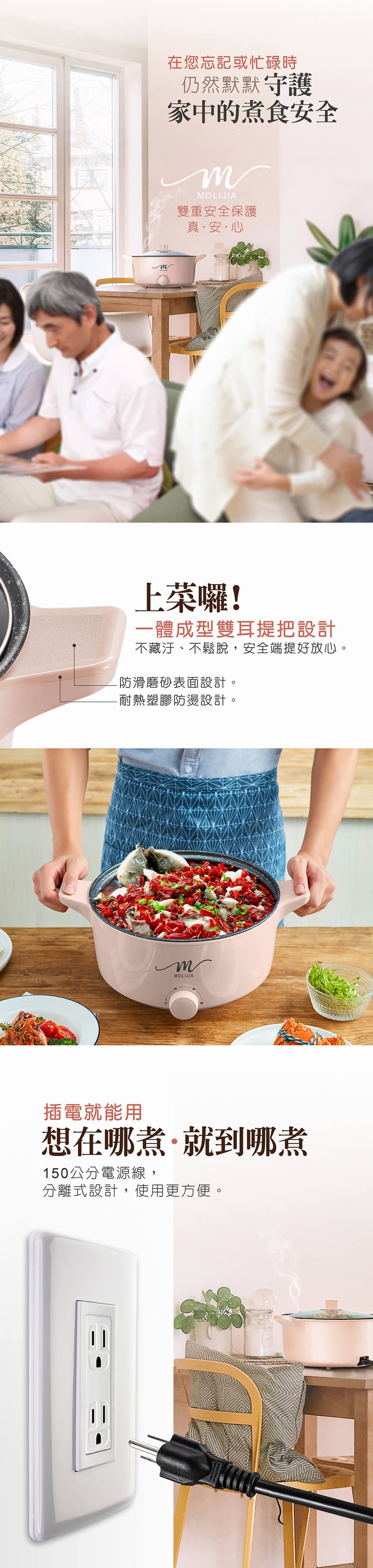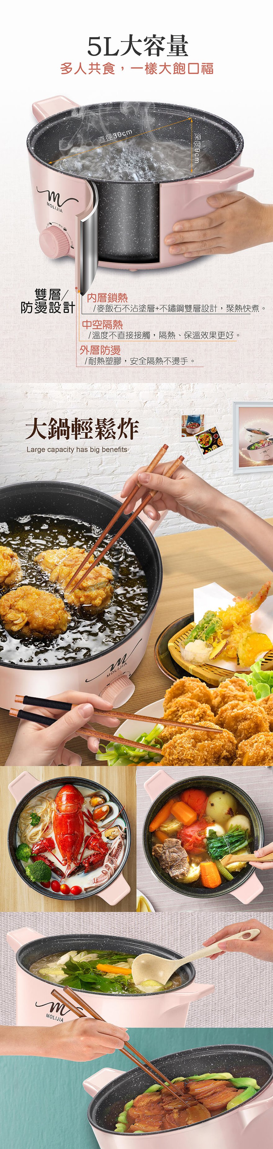【MOLIJIA 魔力家】5L-M21 多功能美食料理不沾快煮電火鍋-藕荷粉