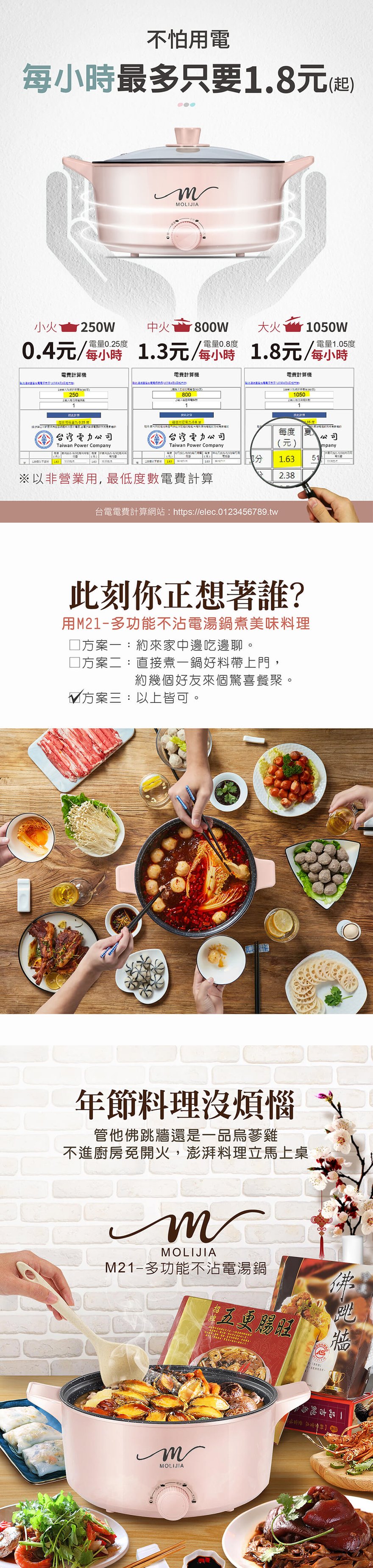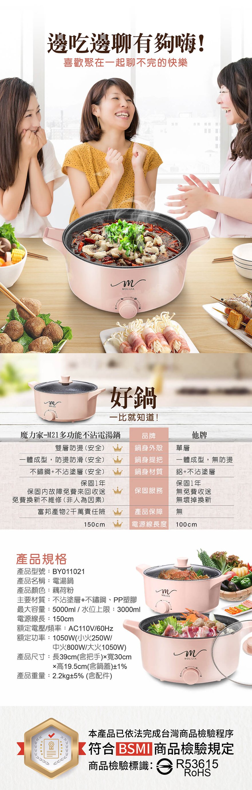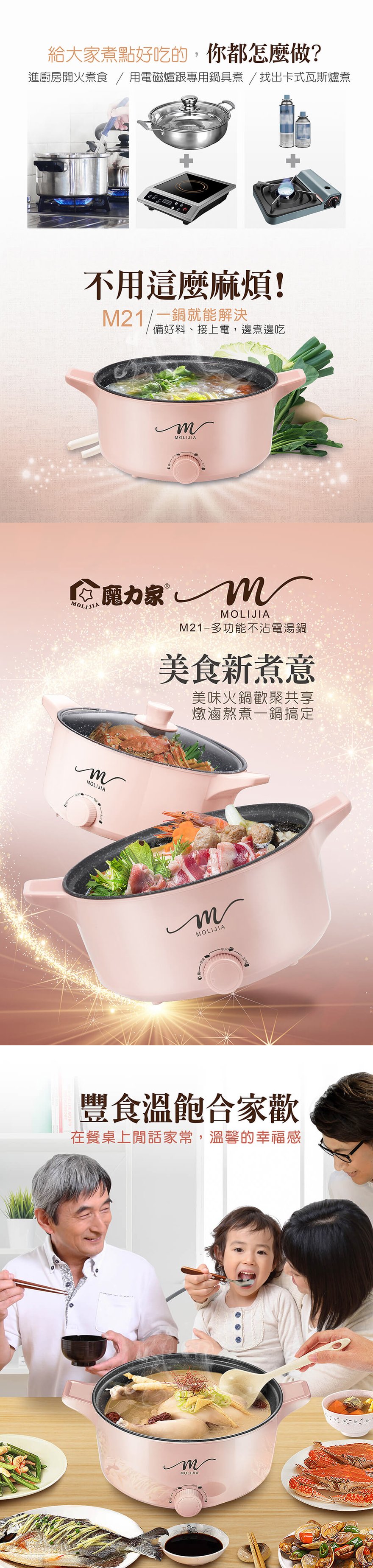 產品名稱:【MOLIJIA 魔力家】M21多功能不沾電湯鍋5L
