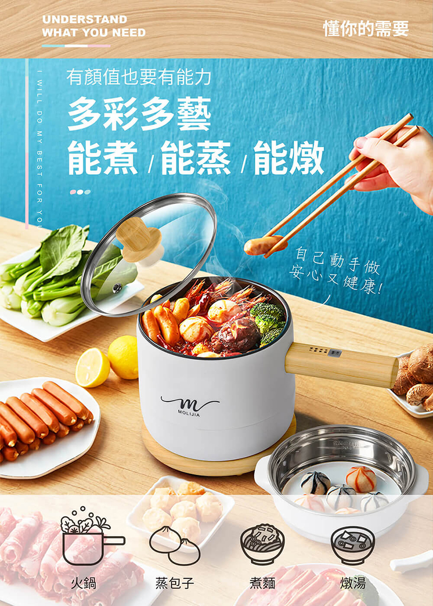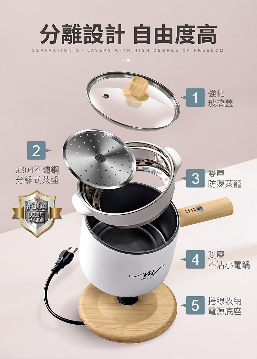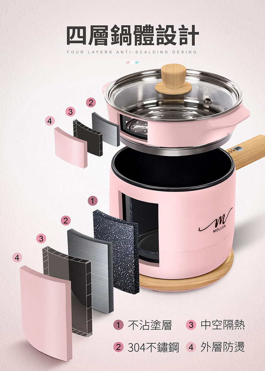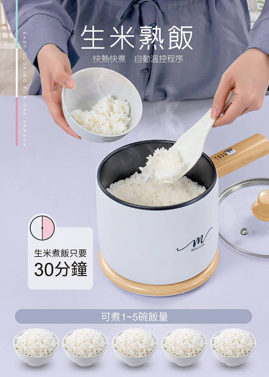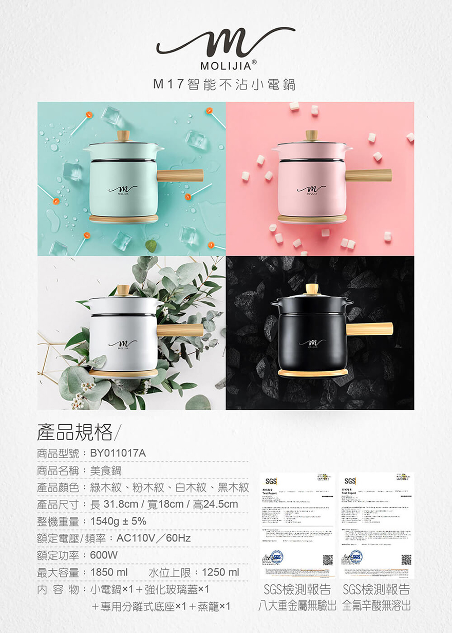 產品名稱:【MOLIJIA 魔力家】M17智能不沾小電鍋-木紋款