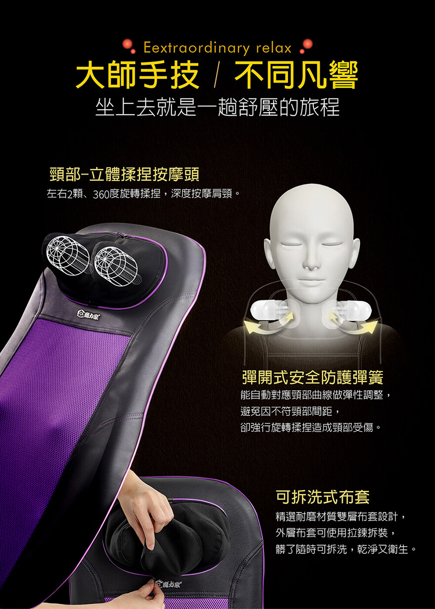 產品名稱:【MOLIJIA 魔力家】M619 摩術大師-頸背多功能按摩椅墊