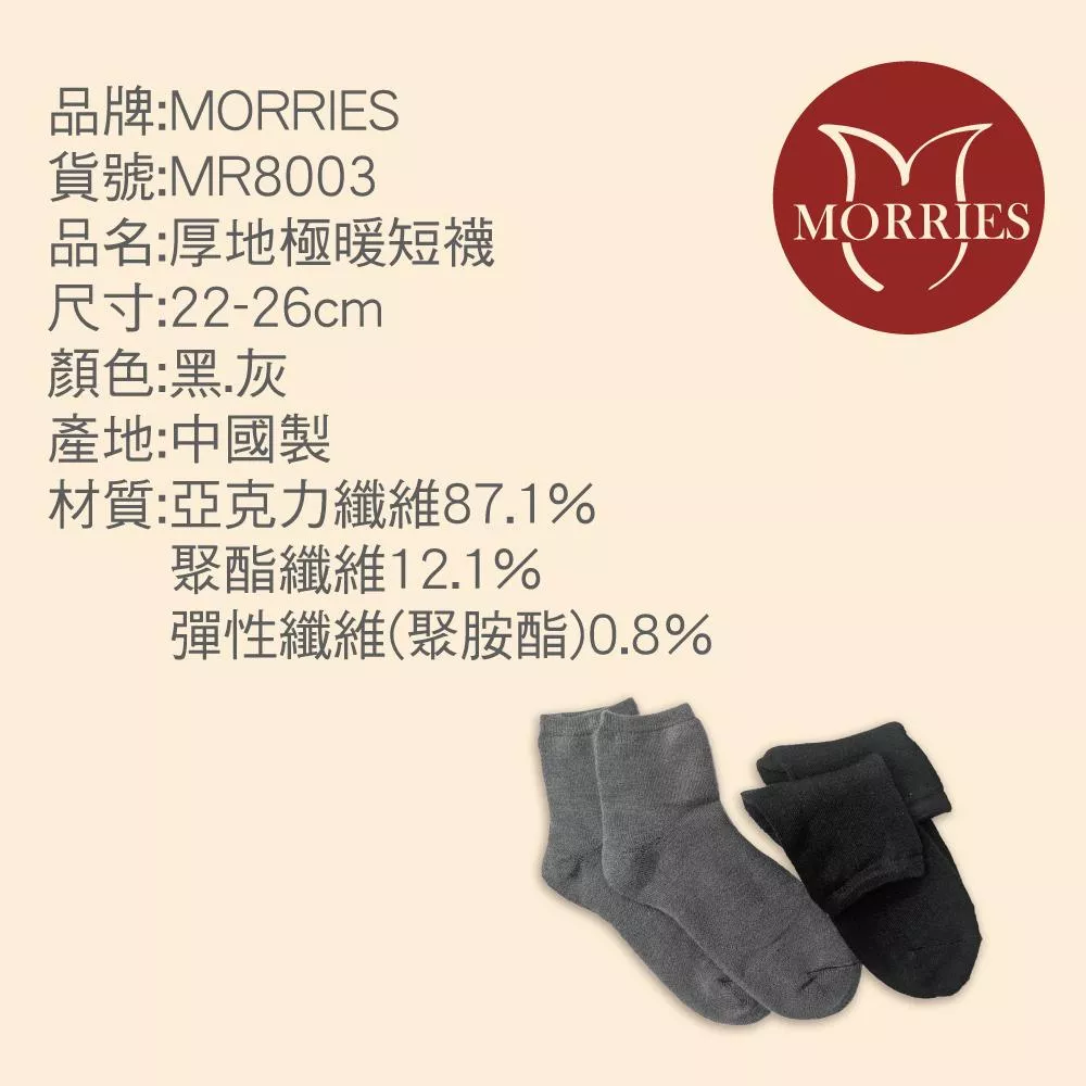 【MORRIES】厚地極暖毛巾船襪MR8003 (男女適用)