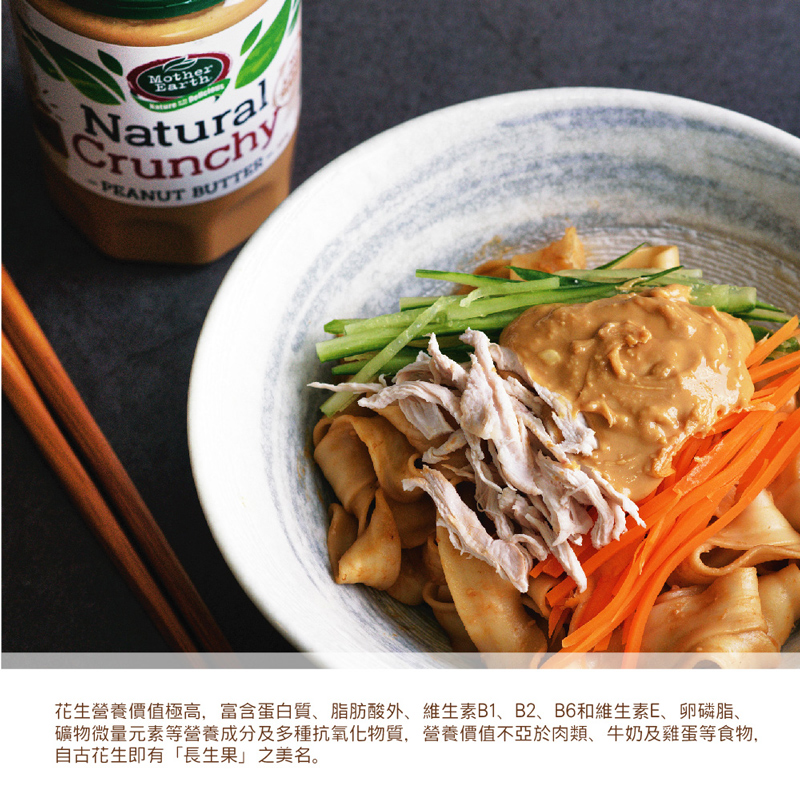#紐西蘭#抹醬#高油酸#涼拌#全素👉 全新包裝,全新式樣,新鮮上架✔採用紐西蘭高油酸花生, 不易變質 不加糖, 無多餘熱量, 只用些許鹽巴帶出花生的香甜 ~✔紐西蘭生產製造, 原裝進口來台, 鄉民熱搜最愛花生醬之一 !✔每一口都充滿香濃花生的顆粒, 卡滋卡滋, 越咀嚼越滿足 ~✔Mother Earth訴求天然, 產品皆極簡單純粹, 源自「大地母愛」👉顆粒口味成分:花生99.5%、鹽細節:每一口都充滿香濃花生的顆粒,越咀嚼越滿足• 內容規格 : 380g/瓶x3• 保存期限 : 15個月• 有效日期 : 如包裝上所示• 原產地(國) : 紐西蘭• 食用方式 : 可塗抹在吐司或依個人喜好食用 • 注意事項 : 本產品含有花生, 不適合對其過敏體質者食用 • 保存方式 : 置於陰涼乾燥處, 避免陽光直射, 開封後請儘早食用, 以免影響風味 ■ 代理廠商名稱 : 好健康國際有限公司■ 代理廠商電話 : 02-26755234■ 代理廠商地址 : 新北市樹林區千歲街57-7號■ 投保產品責任險字號 : 0525第05ML000375號■ 食品業者登錄字號 : H-153997270-00000-7