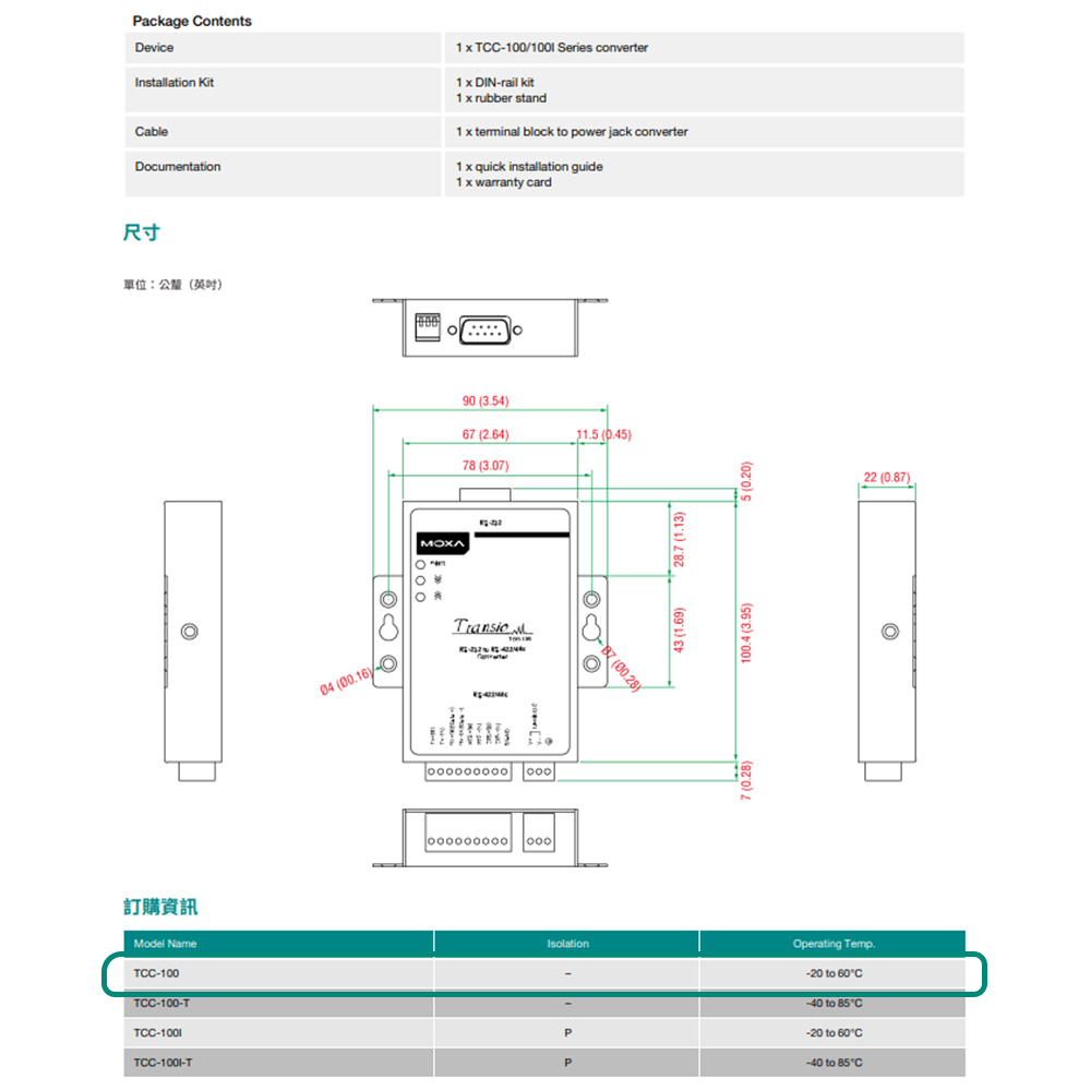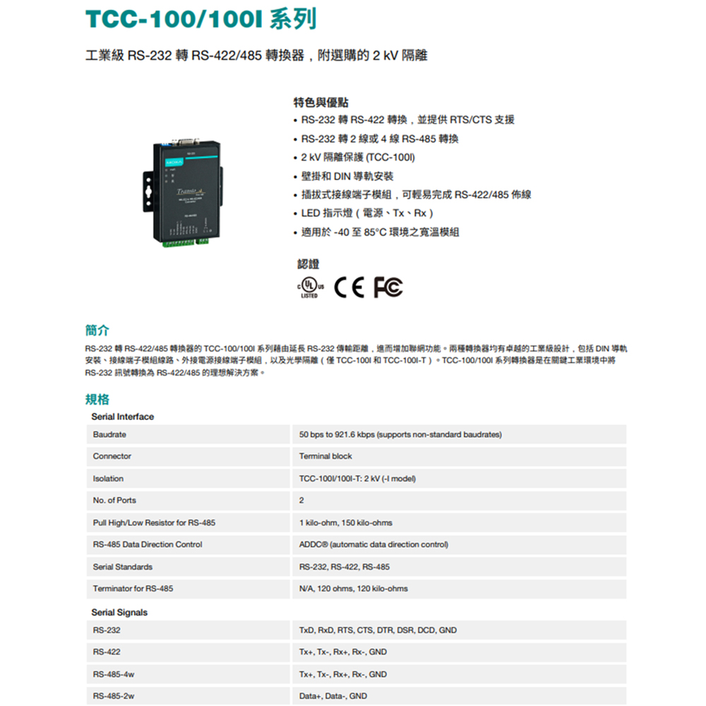 昌運監視器 MOXA TCC-100 工業級RS-232轉RS-422/485轉換器