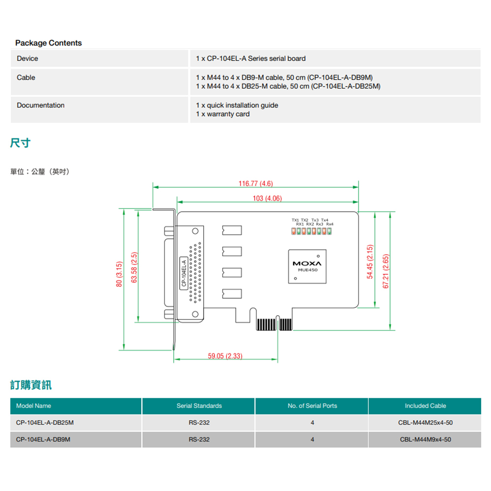 昌運監視器 MOXA CP-104EL-A-DB25M 4埠RS-232 PCI Express串列擴充卡 含DB25公頭電纜