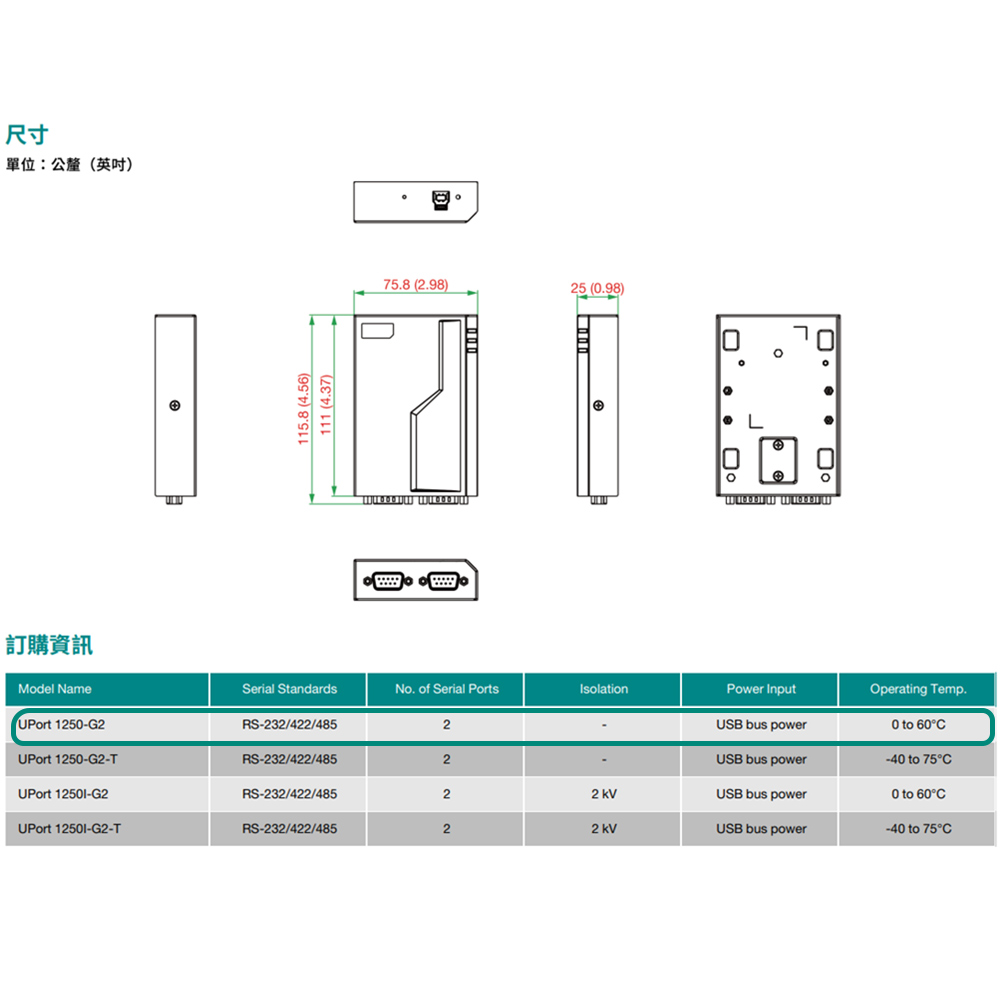 昌運監視器 MOXA UPort 1250-G2 2埠RS-232/422/485 USB轉串列轉換器