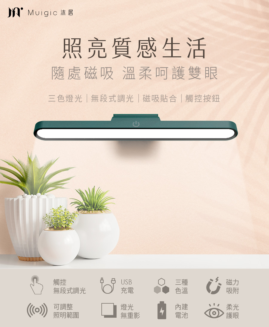 【muigic沐居】USB充電磁吸式護眼檯燈 VN004