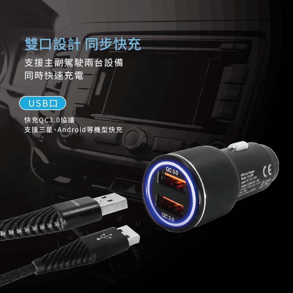 【山水之寶】36W雙QC3.0鋁合金車載電源供應器 USB雙孔