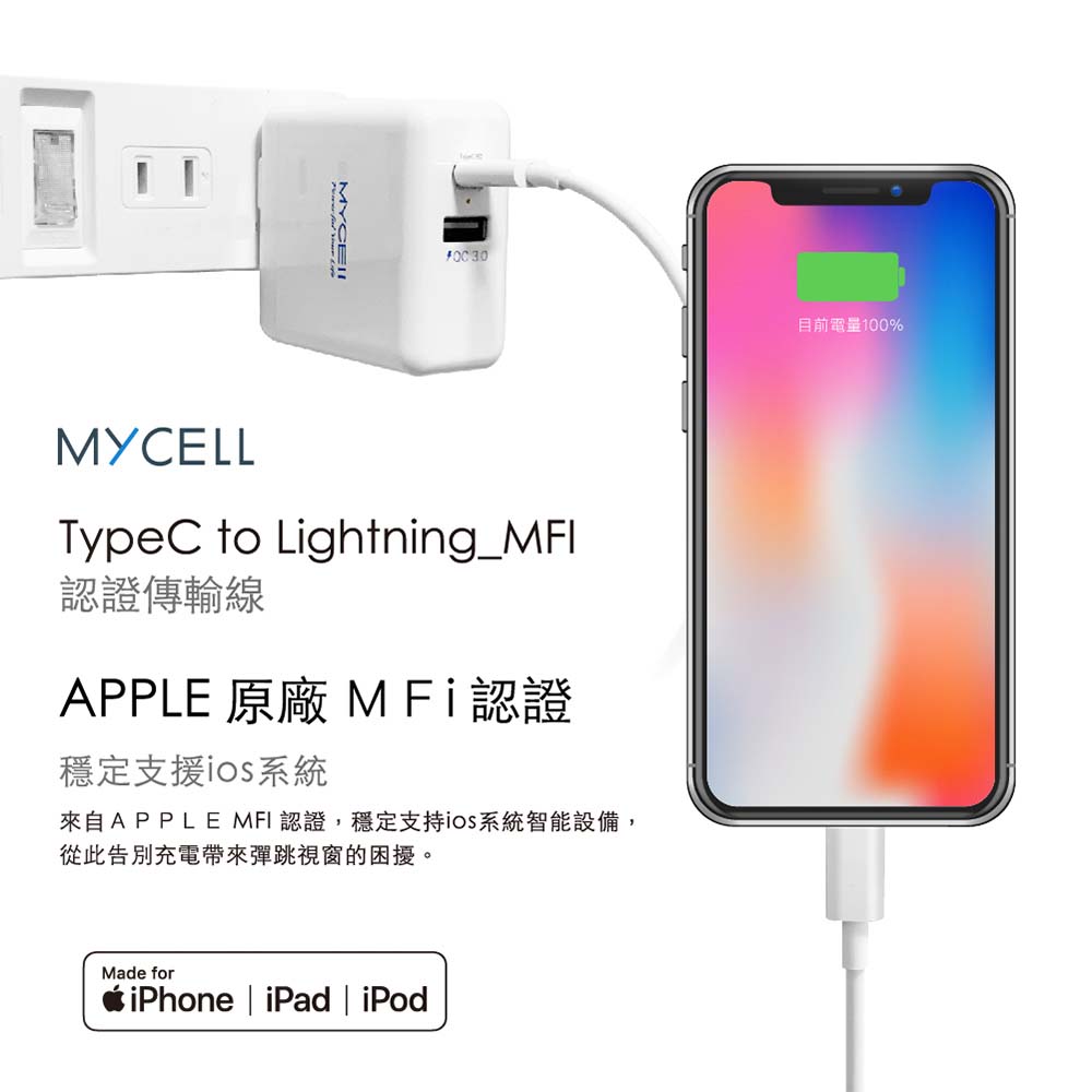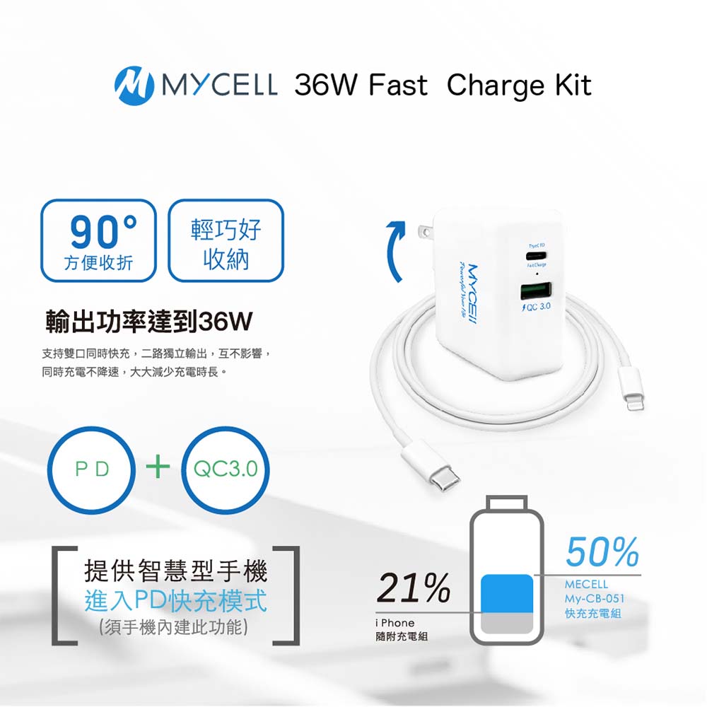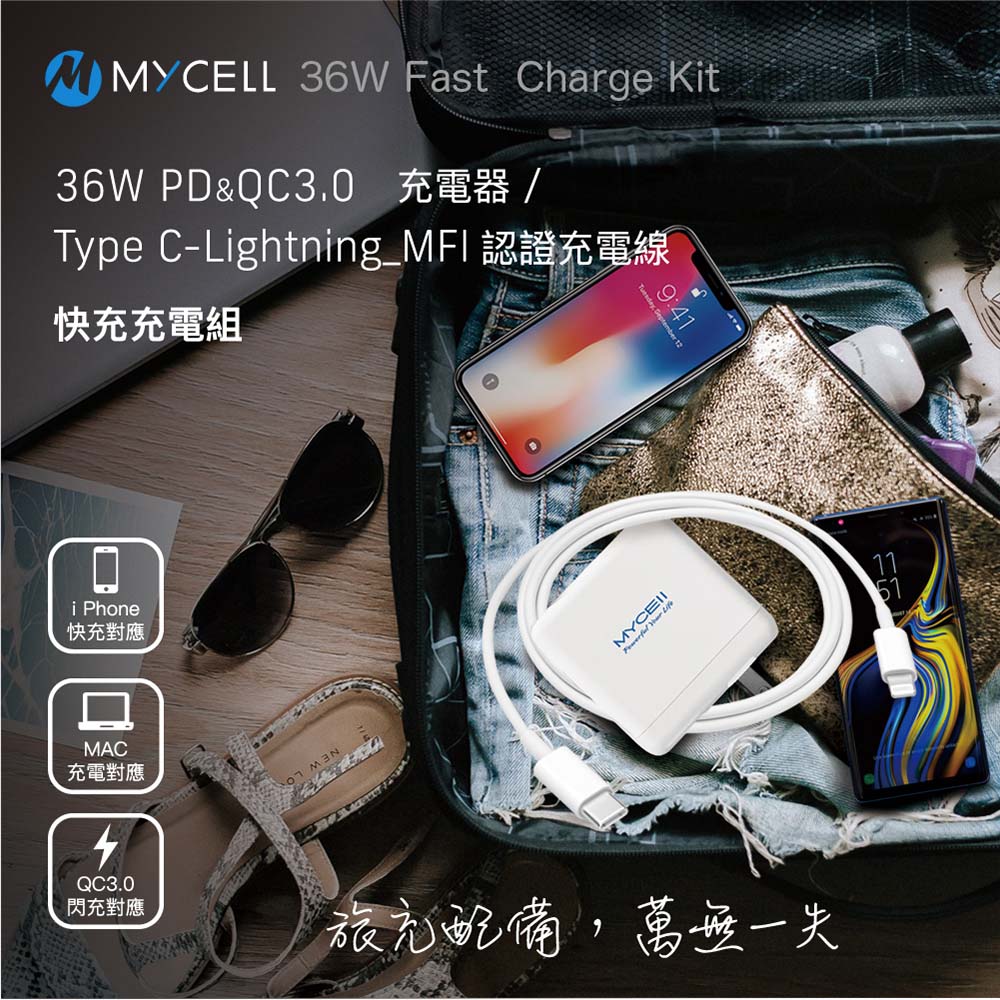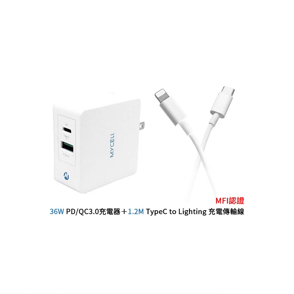 【山水之寶】充電套組 MFI認證 36W PD+QC充電器+C to Lightning 充電線 120cm