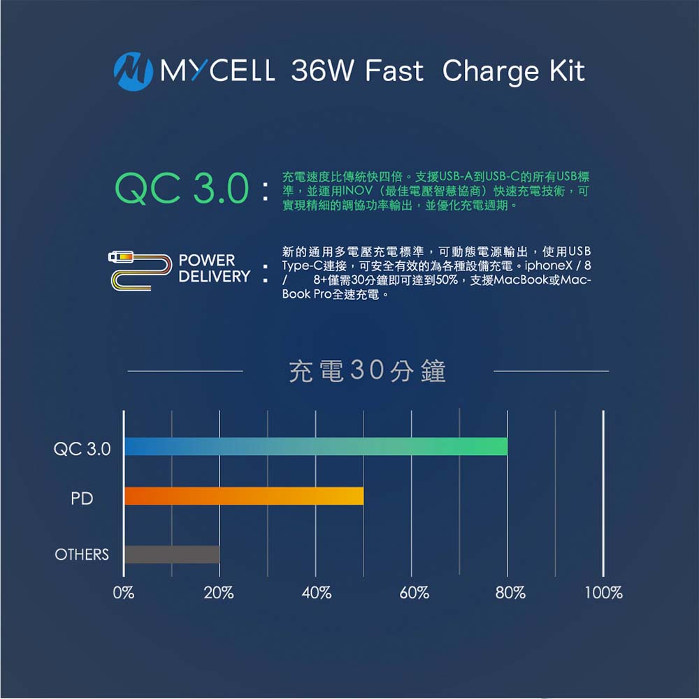【商品特色】• QC3.0及TypeC PD 充電,平板、手機充電好方便• 較一般5V充電提升70%,比QC2.0充電提升30%• 支援APPLE快速充電,0%~50%僅要30分鐘• 支援12V / 9V / 5V快充, 智能晶片自動調控• 5重智慧保護:短路保護/過電壓保護/過電流保護/低負載保護/過熱保護• 收折式設計,攜帶好方便• 保固12個月