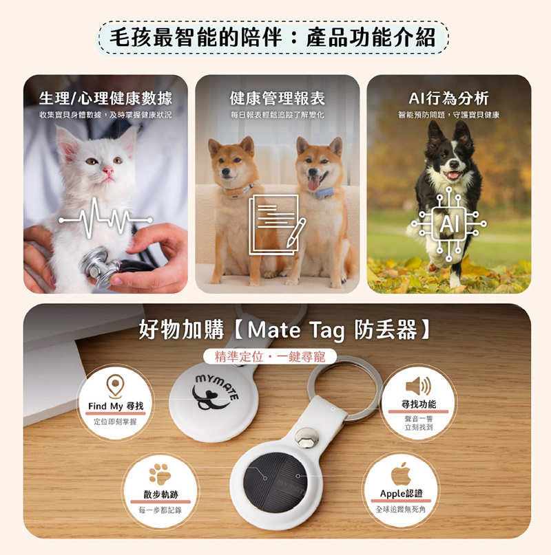 【精鼎智能】Mymate 寵物智慧項圈裝置組 牛奶藍L