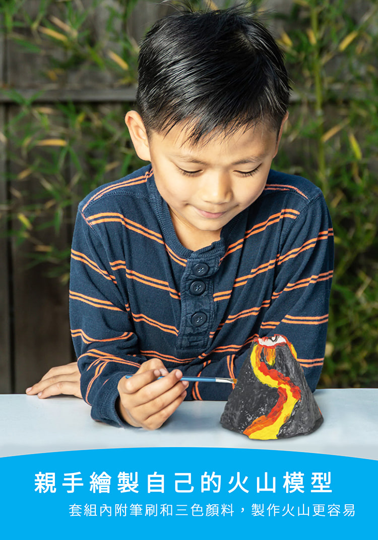 高品質幼教玩具真實的火山岩石 - 包括輕石和晶洞標本完美的早教STEM玩具套組,讓孩子在遊玩中學習化學、地質和地球科學的知識經過專家檢驗的在家教學玩具套組,孩子會愛死它們!給孩子的最棒STEM科學教育玩具,一份寶貝終生難忘的禮物親手繪製自己的火山模型套組內附筆刷和三色顏料,製作火山更容易完整的科學套件創建火山所需的一切,繪製火山外殼,也可以讓火山爆發!讓科學變得有趣又好玩科學展覽的完美手做實驗,附國家地理的英文學習指南,讓孩子撰寫出最棒的科學實驗報告