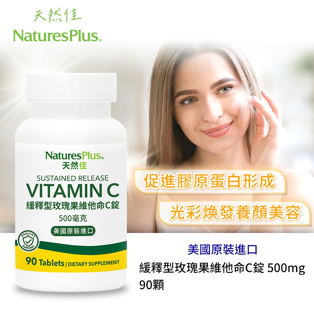 😀維他命C,讓你天天水嫩好氣色,一天一顆,1次搞定💊後疫情時代,每天補充維他命C,持續提升保護力💡補充膠原蛋白時,可同時食用,增加吸收率📋專利SUSTAINED RELEASE緩釋型,慢慢吸收🍎優質玫瑰果添加,提升維他命C的作用🧬維生素C具抗氧化作用,促進膠原蛋白形成,有助傷口癒合👍NaturesPlus 天然佳 維他命C,天天都健康。✅品名:緩釋型玫瑰果維他命C錠 (500毫克)✅內容量:90錠✅有效日期:2028年11月✅維他命C好處,可以GOOGLE就可以了解唷~~♻️環保輕簡包裝,愛護地球,無法接受請不要下單唷!♻️購買公司貨,隨貨附發票;買的放心,食在安心。【NaturesPlus 天然佳】 台灣總代理