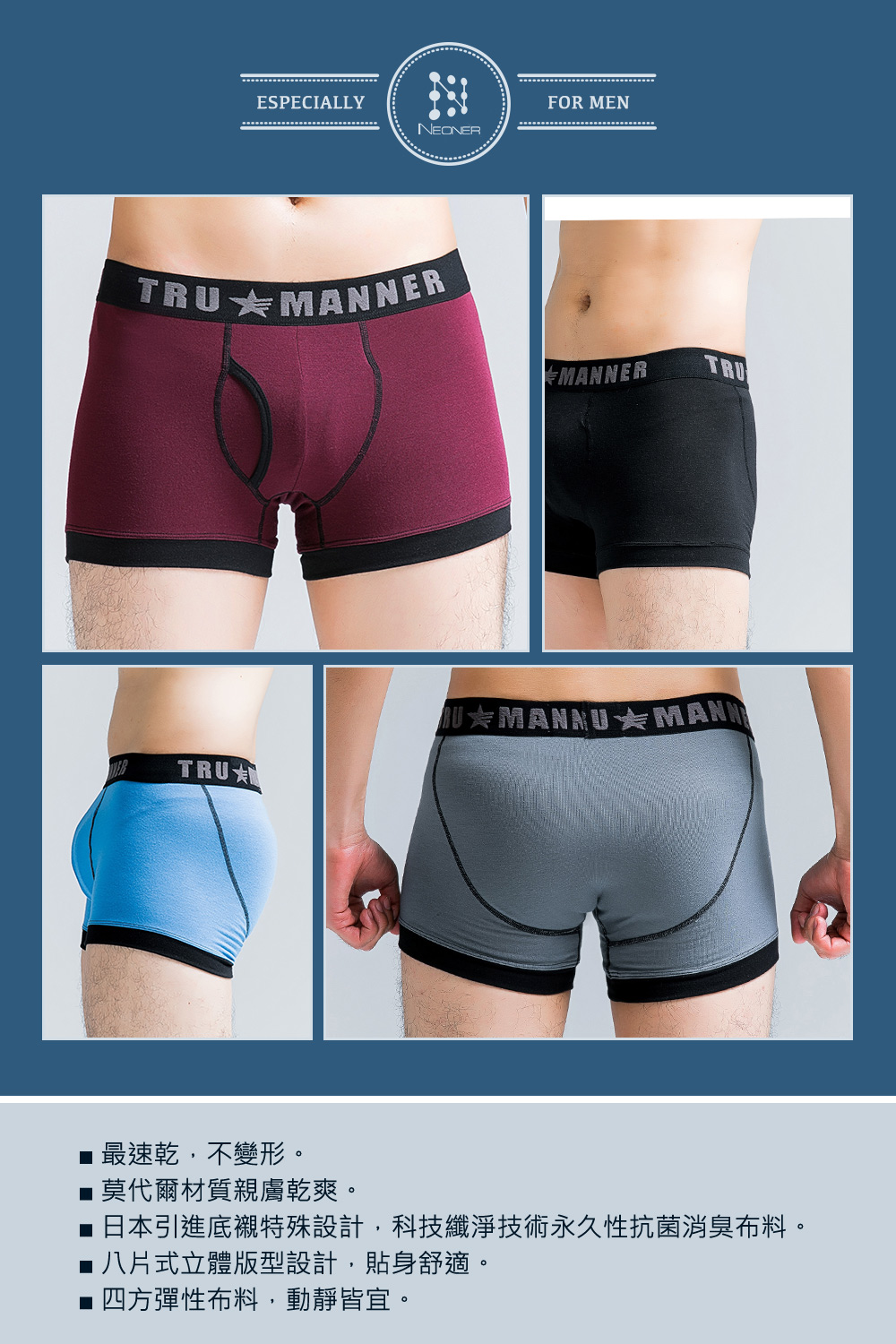 【NEONER】莫代爾男性平口低腰抗菌內褲-酒紅色