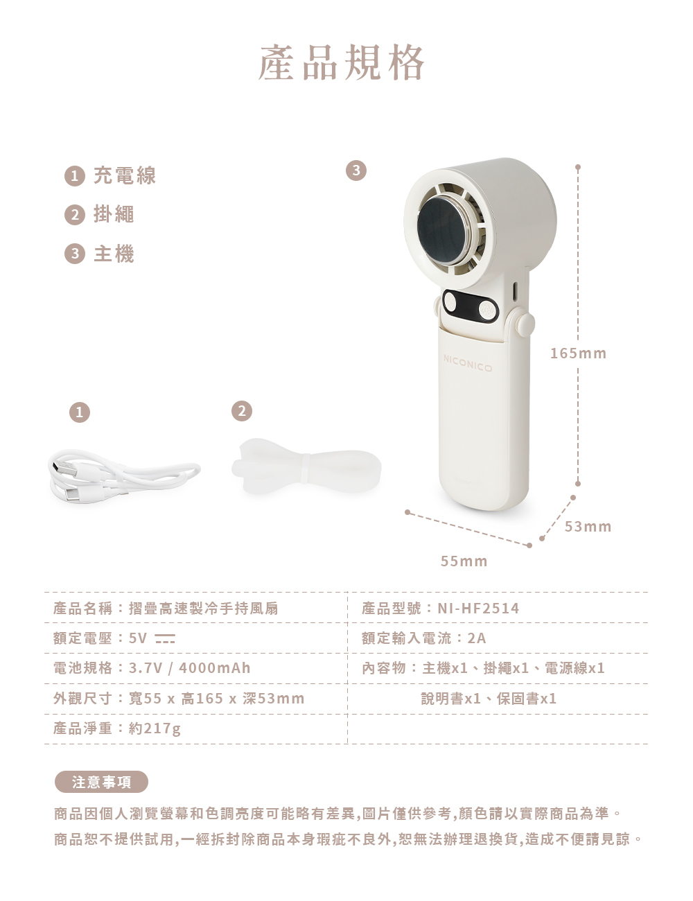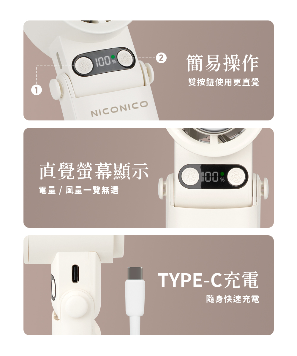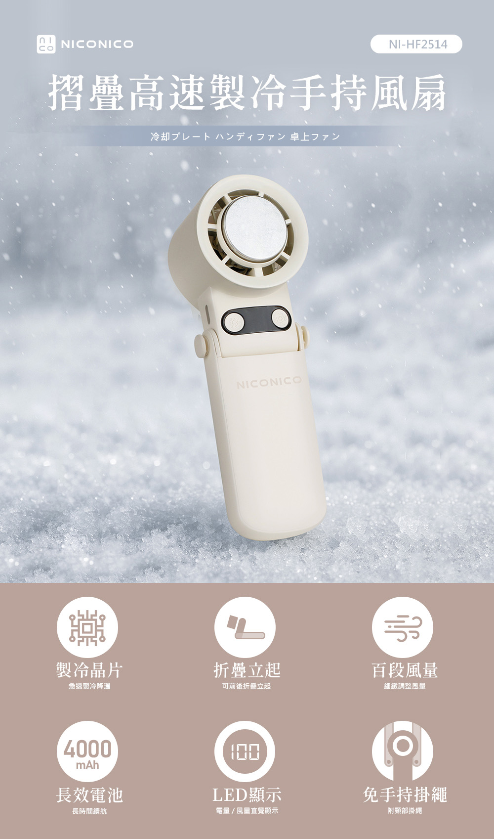 【NICONICO】摺疊高速製冷手持風扇NI-HF2514