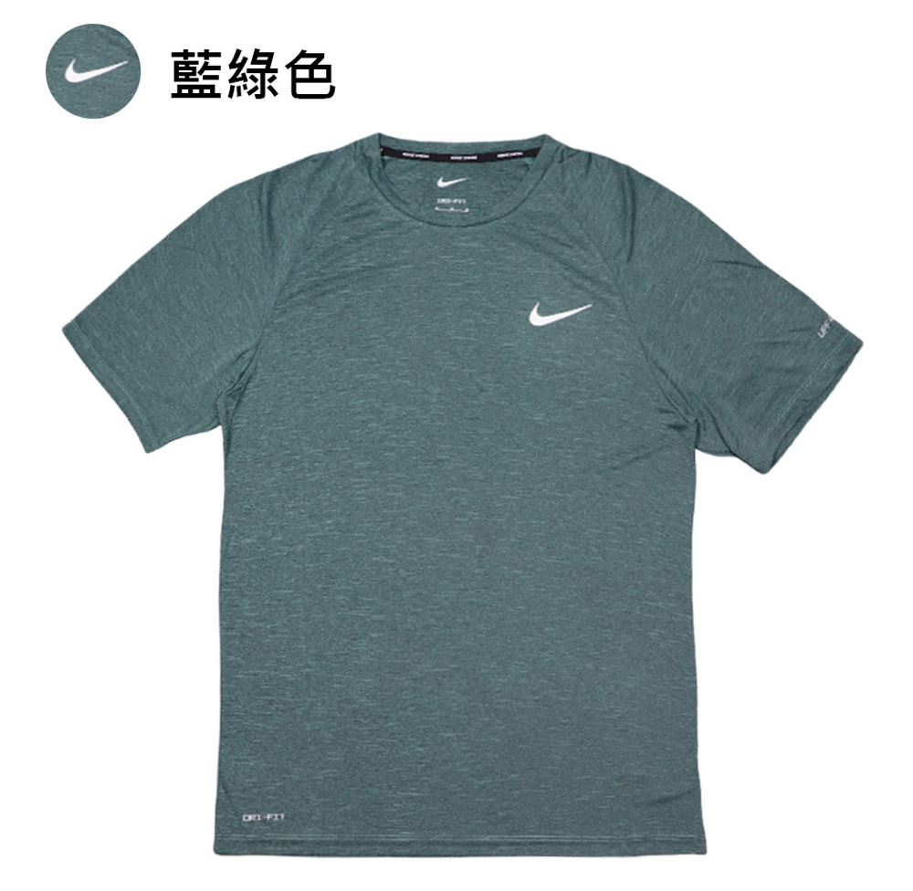 NIKE NEW HEATHER成人男性短袖防曬衣 健身 戶外運動 抗UV 吸汗 乾爽 透氣 彈性 舒適 深灰 藍綠 橘