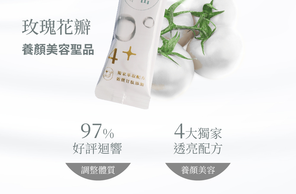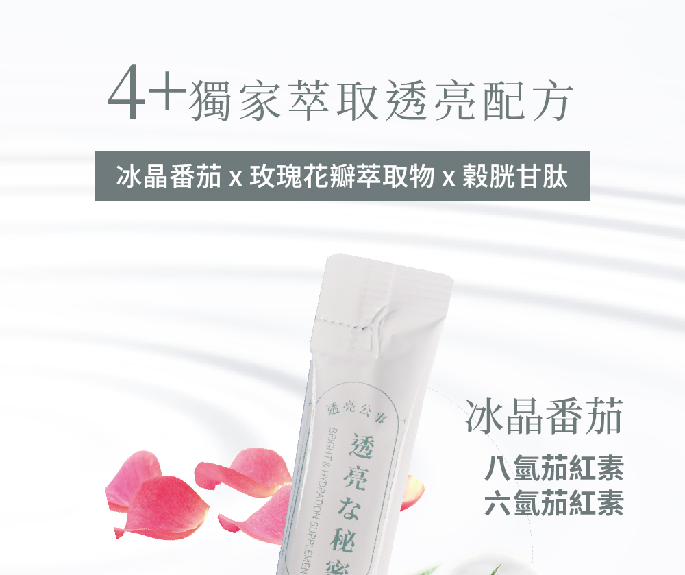 🎖4大透亮食材冰晶蕃茄、玫瑰花、鏈球菌發酵物、穀胱甘肽