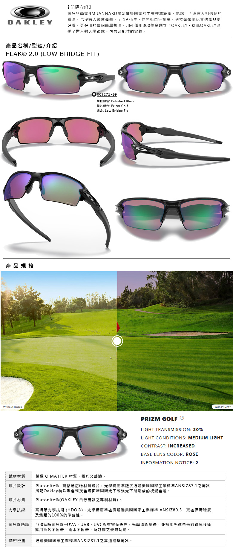 【OAKLEY】FLAK® 2.0 (LOW BRIDGE FIT) 亞洲版 PRIZM 色控科技 高爾夫用鏡片 運動太陽眼鏡