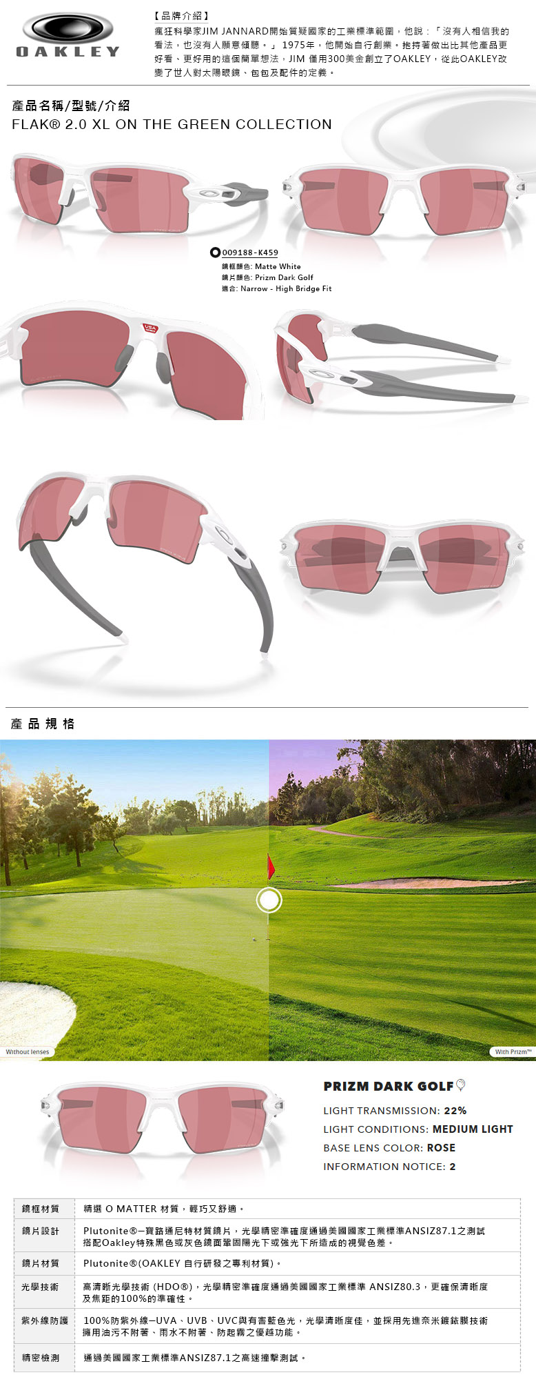 【OAKLEY】FLAK® 2.0 XL ON THE GREEN COLLECTION PRIZM 色控科技 高爾夫用鏡片 運動太陽眼鏡