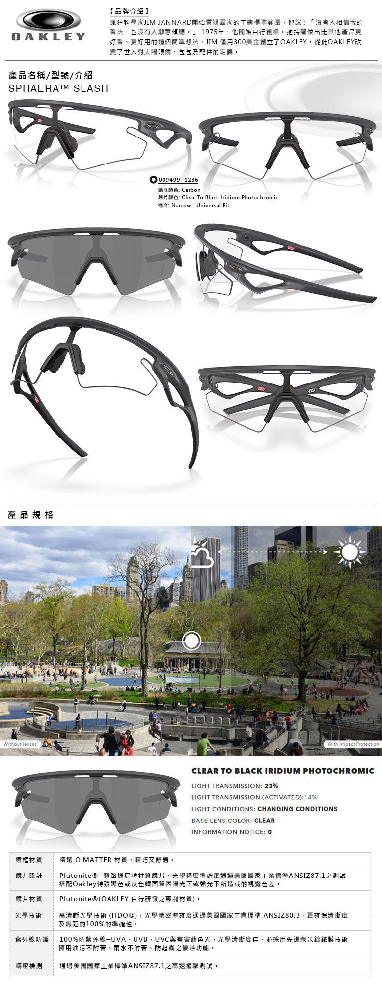 【OAKLEY】SPHAERA™ SLASH 自動變色片 運動太陽眼鏡