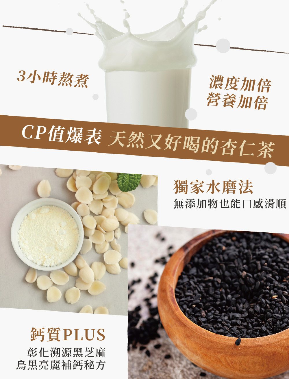 🎖額外添加珍珠粉,養顏美容🎖獨家水磨法,不勾芡,口感也細緻濃密🎖無奶、無米、無香精,體驗天然杏仁香氣🎖芝麻豐富營養