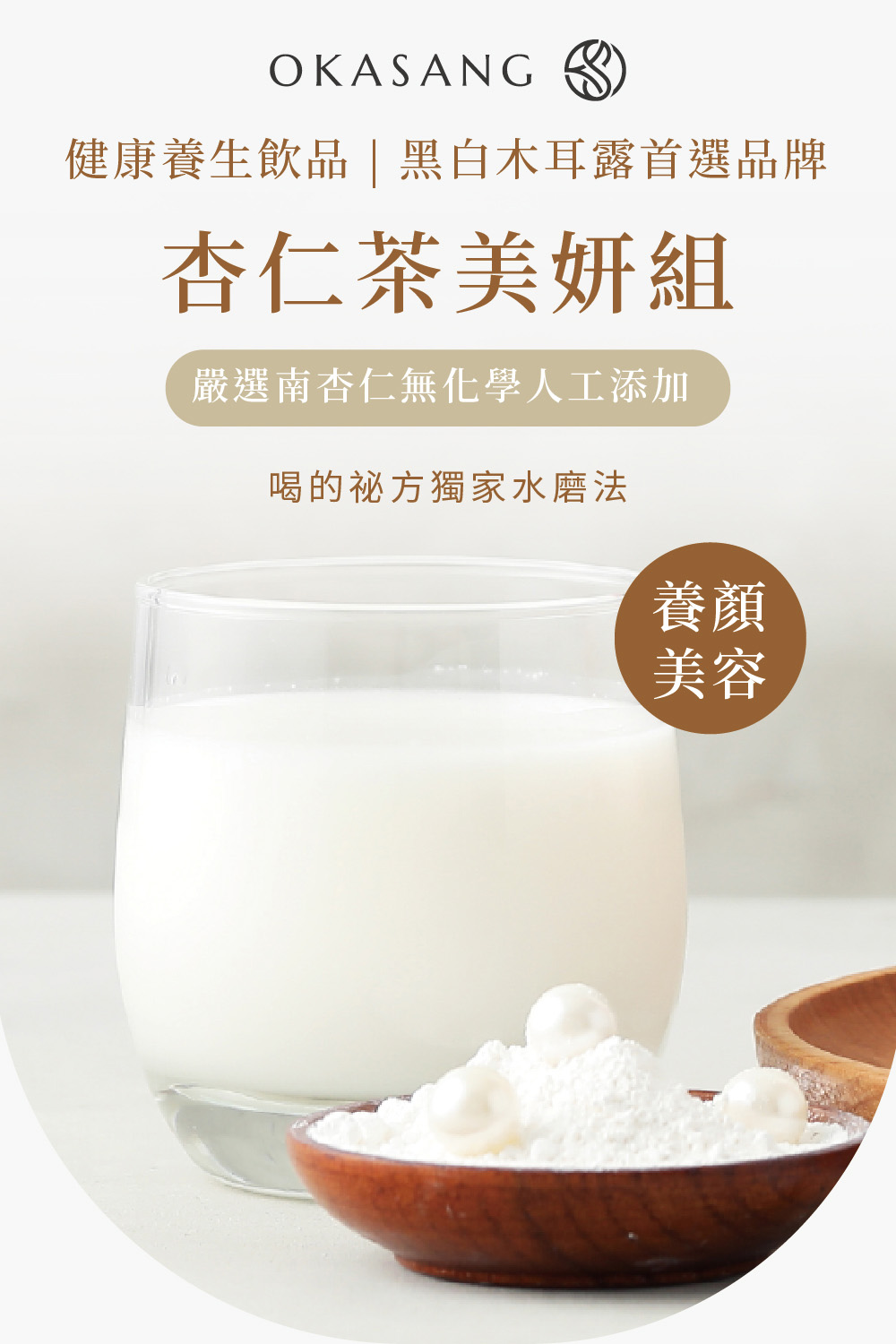 珍珠杏仁美妍茶: 水、南杏仁、冰糖、白木耳、珍珠粉/ 黑芝麻杏仁茶:水、冰糖、南杏仁、黑芝麻、白木耳、珍珠粉 *本產品含芝麻、杏仁,不適合對其過敏體質者食用