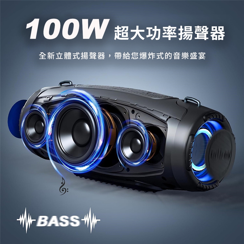 【ortizan】M8 重低音藍牙音響|100W重低音 便攜設計 RGB燈效 IPX7防水