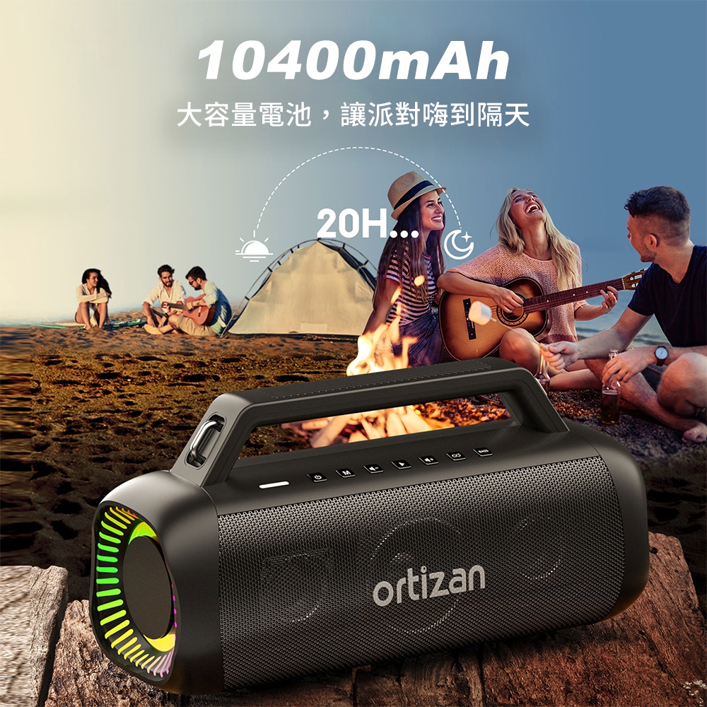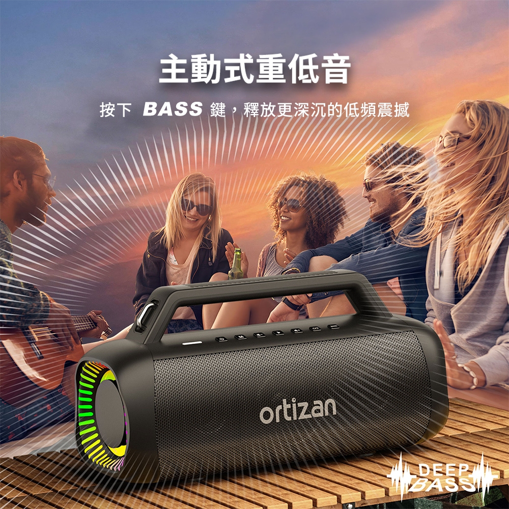 【ortizan】M12 戶外便攜音響|60W重低音沉浸立體聲 IPX7防水 長效續航