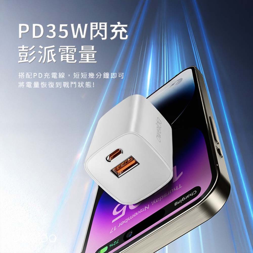 【山水之寶】支援i17快充 GaN氮化鎵充電器 歐威達 35W 氮化鎵 PD+QC3.0急速充電器器 電源供應器 快速充電-白色