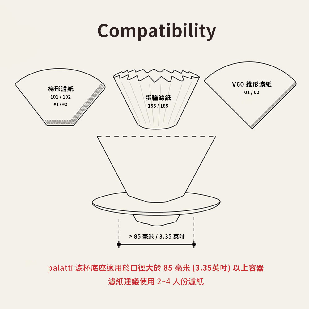 *注意:濾杯底座適用於口徑大於85mm(3.35英吋)以上容器