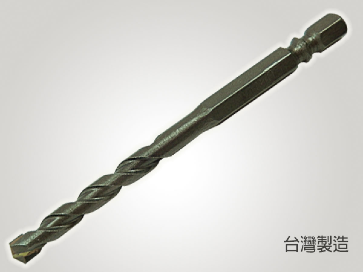 六角軸雙溝水泥鑽尾,雙溝槽設計適用各種機型1/4”(6.35mm)衝擊起子機或一般電鑽夾頭,可用於水泥、磚頭、磁磚、金屬薄板上鑽孔。