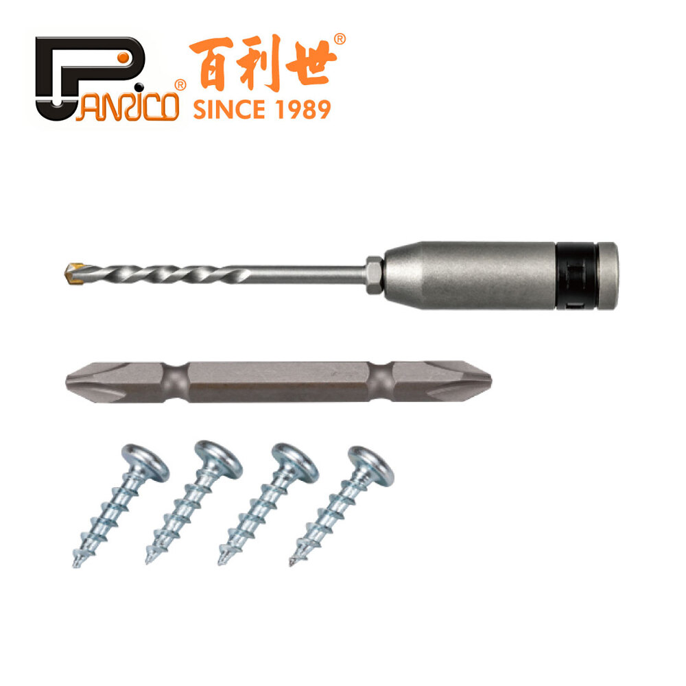 台灣製造3.4mm替換式鑽及鎖組,附十字起子頭和6分水泥螺絲,鑽頭適用於拋光石英磚、金屬板、磚、水泥、石膏板及陶器等多種材料。獨特的鑽兼鎖功能在鑽孔的同時可快速將螺絲安裝固定。