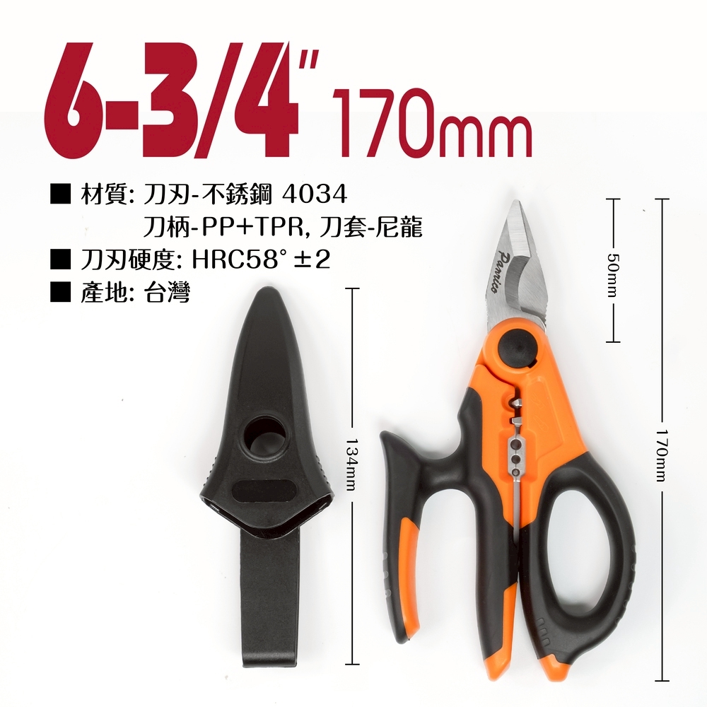 ■ 尺寸:剪刀全長-170mm / 刃長-50mm / 護套長-134mm