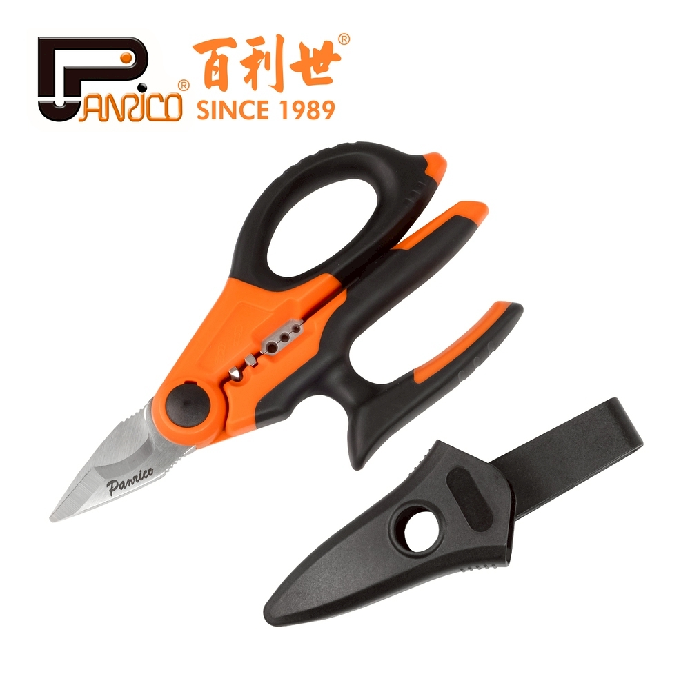 專為電工設計的專業多功能剪刀,日本不鏽鋼打造,剪切力強,能應對80mm²電纜。附專屬護套,方便腰掛攜帶。集剪線、壓接、剝線等多種功能於一身,是現場作業的理想工具!