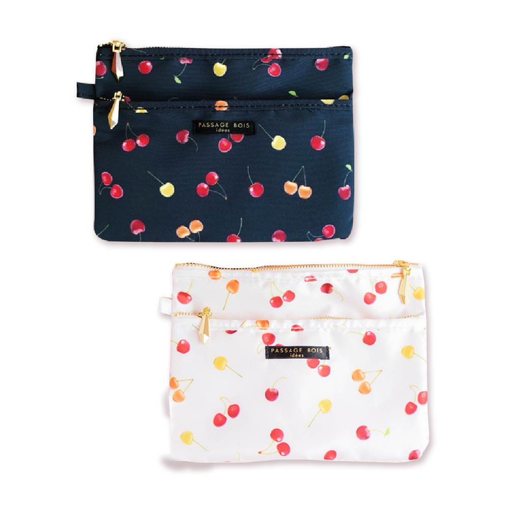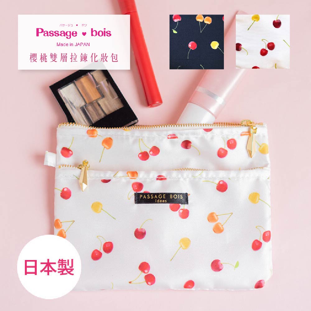 日本製 【Passage Bois】櫻桃 雙層拉鍊化妝包