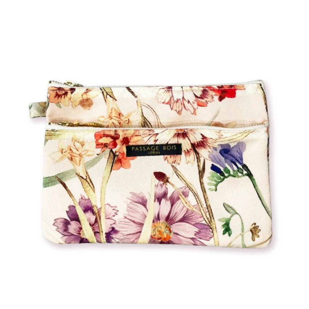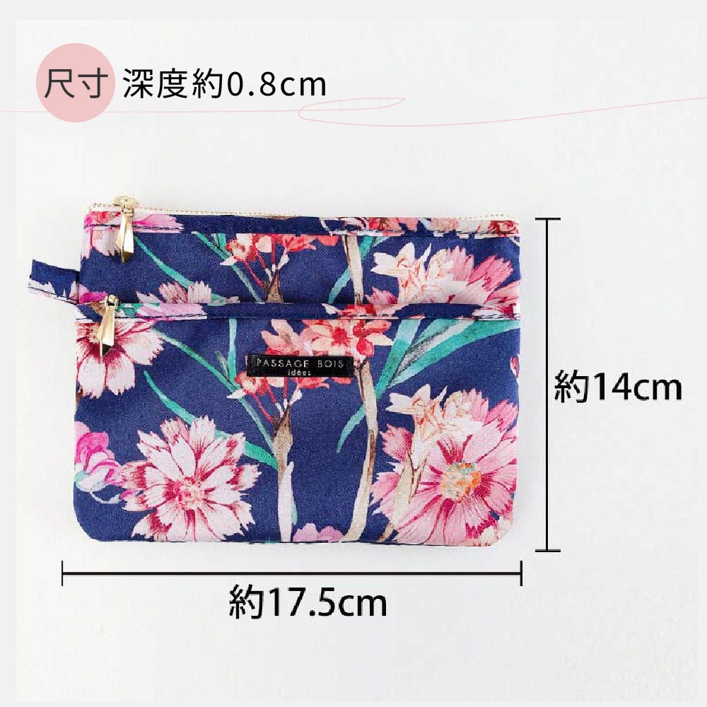 日本製 【Passage Bois】小蒼蘭 雙層拉鍊化妝包