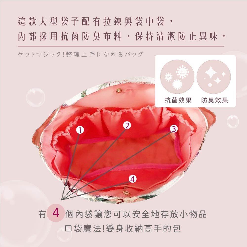 日本製 【Passage Bois】雙口袋大容量抗菌手提袋中の生地に抗菌防臭生地を使用した大きめバッグインバッグです。