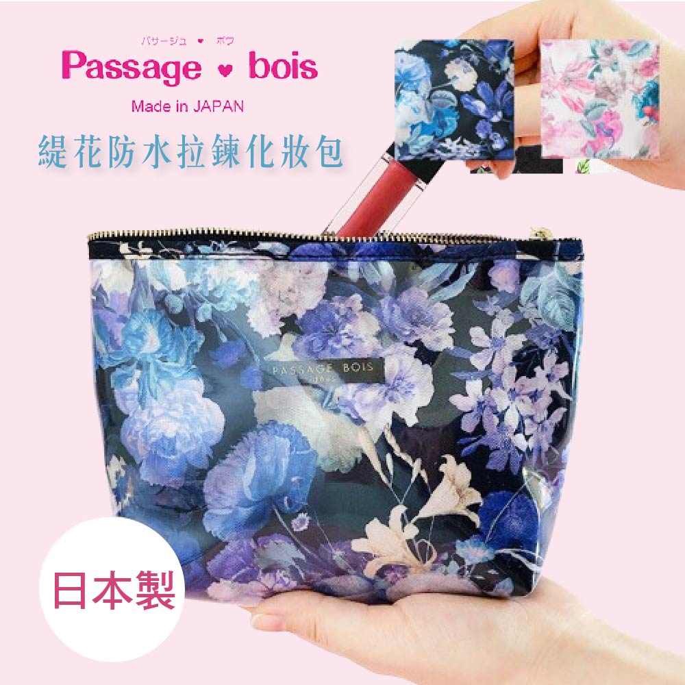 日本製 【Passage Bois】緹花 防水拉鍊化妝包
