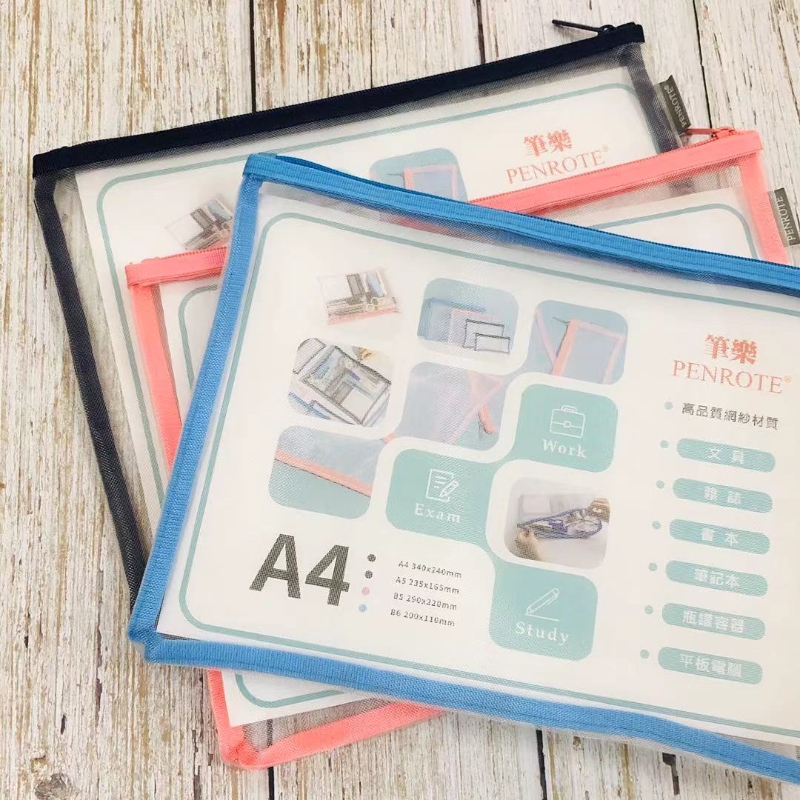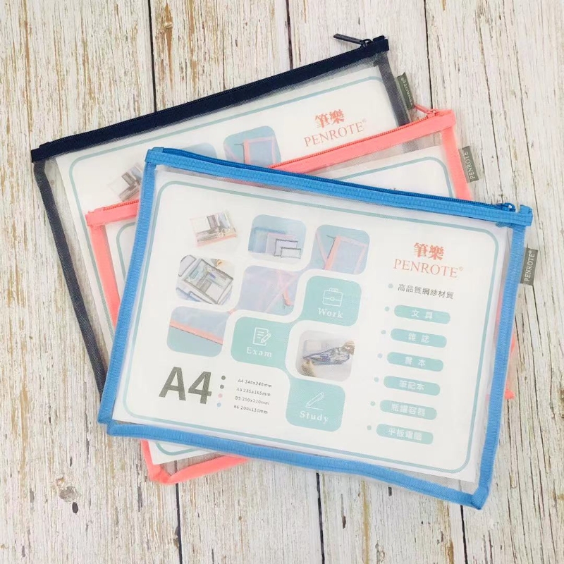 【PENROTE 筆樂】A4網紗收納袋 粉