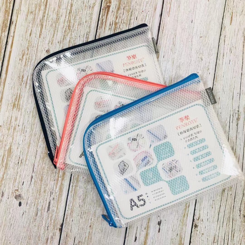 【PENROTE 筆樂】A5 EVA L型環保網格收納袋 藍