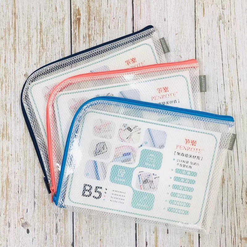 【PENROTE 筆樂】B5 EVA L型環保網格收納袋 藏青