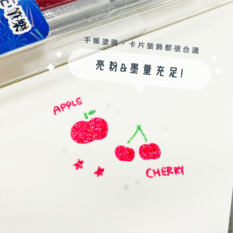 .亮粉、出墨充足,適合手帳塗鴉、卡片裝飾~