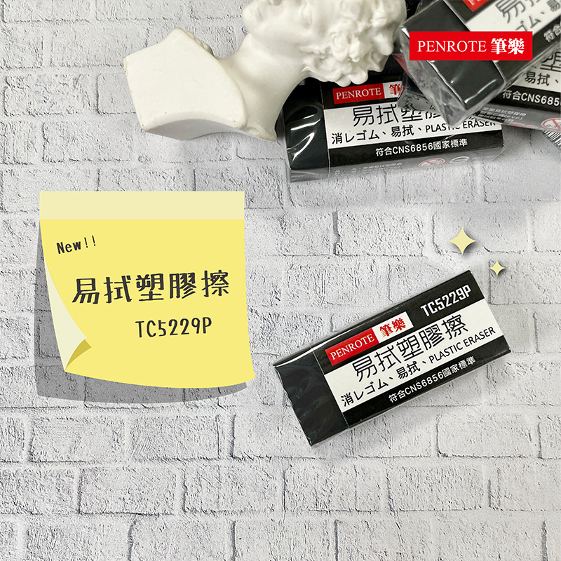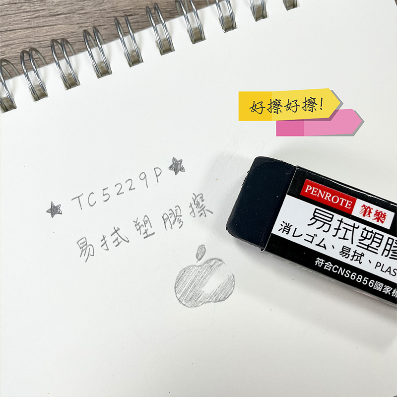 【PENROTE 筆樂】易拭塑膠擦 黑