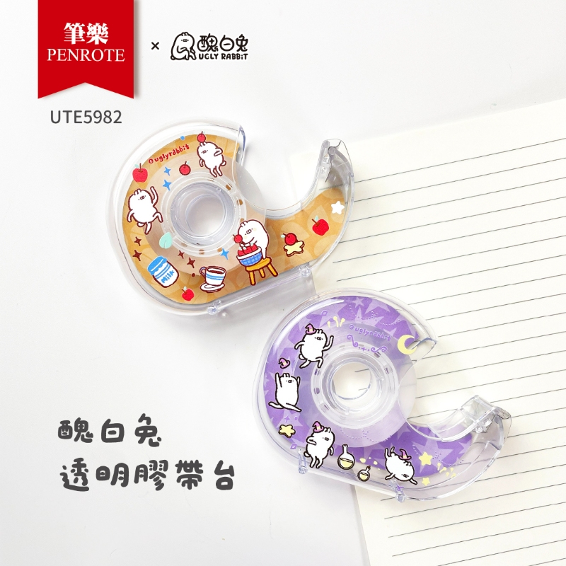 【PENROTE 筆樂】醜白兔透明膠帶台 A款