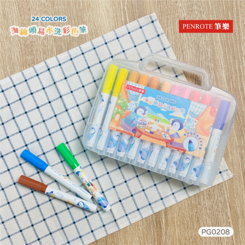 【PENROTE 筆樂】24色海綿頭易水洗彩色筆