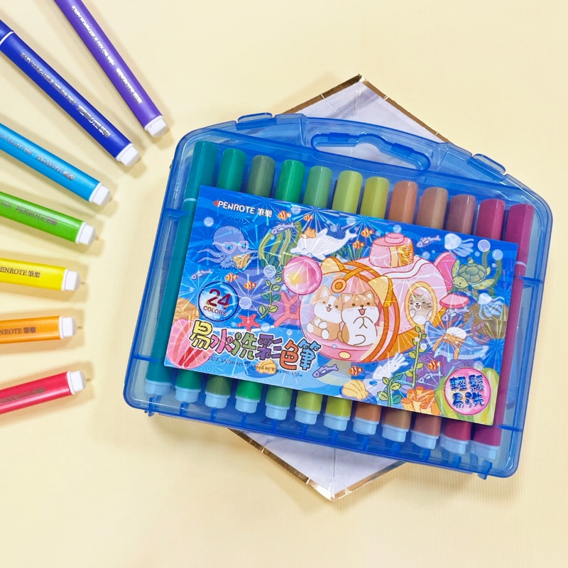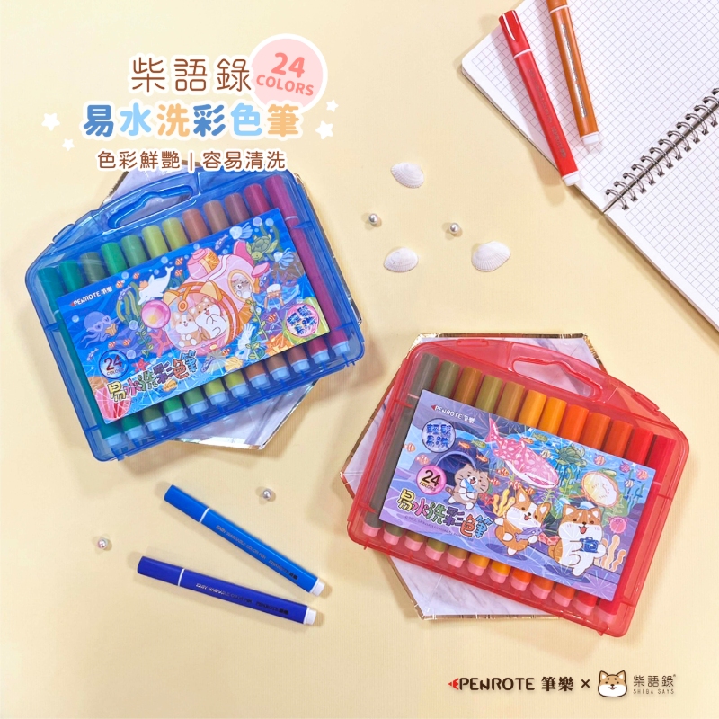 【PENROTE 筆樂】柴語錄24色易水洗彩色筆 粉