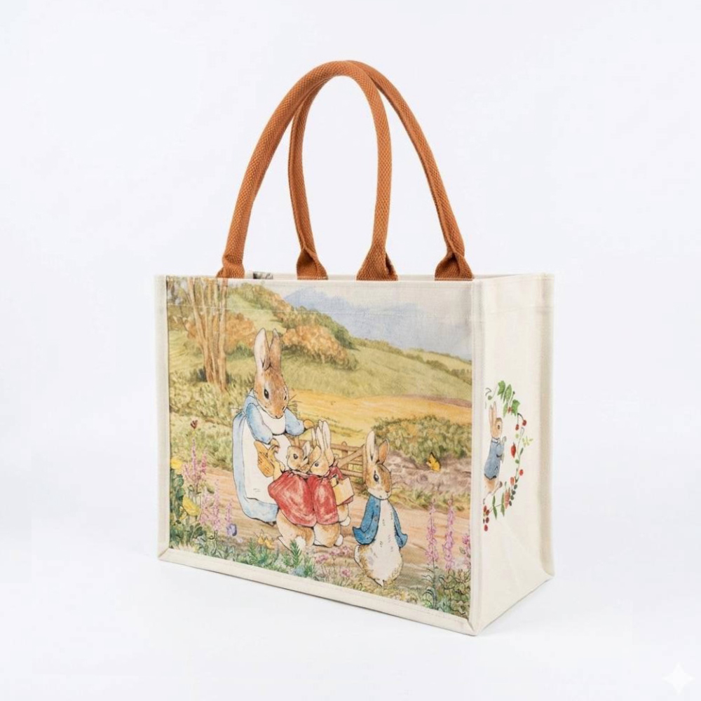 溫暖的帆布質感搭配經典比得兔插畫為主題,呈現自然、復古又可愛的風格,彷彿走進童話般的小清新世界。輕巧卻實用的大容量設計,立體袋身容量剛好,不論上班上課通勤、外出購物或午後的小旅行,都能輕鬆裝下你的日常。商品特色:● 經典比得兔插畫:質感印刷,散發童趣與故事感。●厚實帆布材質:耐用、自然、質地溫潤。●大容量設計:可放水壺、錢包、A5筆記本、手機小物通通沒問題。●舒適質地提把:好握不勒手,外出久提也不易●輕便好搭配:從通勤到約會都合適的文青日常提袋。●環保可重複使用:購物、外帶餐盒皆適用。大帆布袋尺寸:27x34x15cm (不含手把)材質:帆布原色/ 拉鍊內袋 / 安全拉鍊 / 內加腹膜防水層